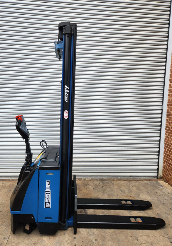 A empilhadeira elétrica patolada PT1654 da linha PT Paletrans é um equipamento de tração e elevação por acionamento elétrico, com o operador em pé, andando. Nesta linha existe a possibilidade de instalar uma plataforma opcional para operador em pé, a bordo. Por ser uma empilhadeira patolada, ela opera exclusivamente em paletes abertos, sendo ideal para almoxarifados e carga e descarga de caminhões e camionetes.