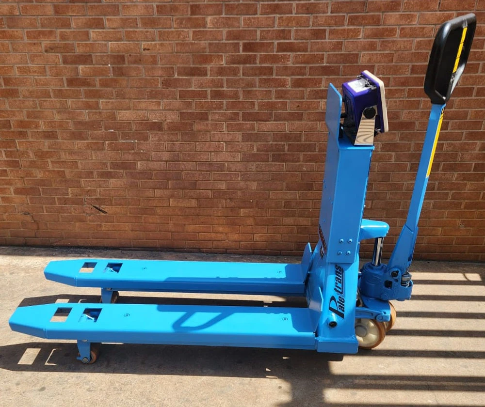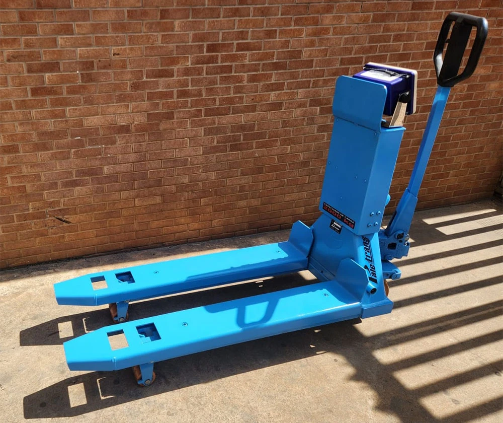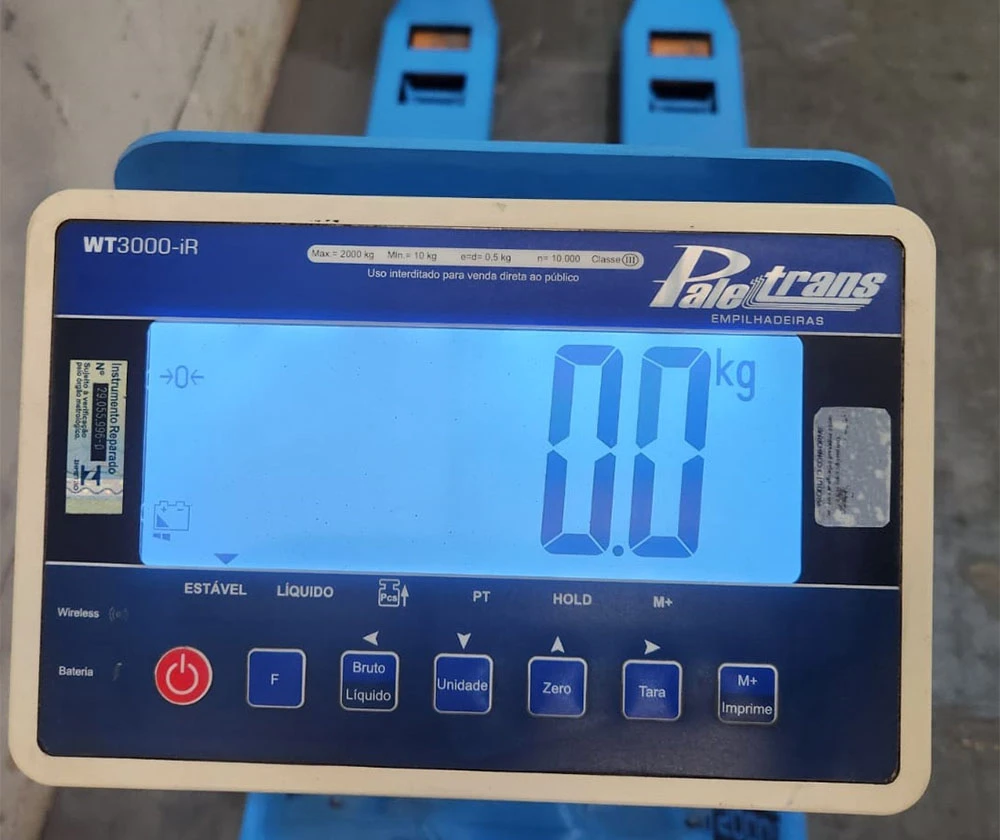 Com capacidade de carga de duas toneladas, o Transpalete Balança da Paletrans utiliza 4 células eletrônicas para aferir o peso da carga acondicionada sobre o seu garfo. Com isso, o trabalho de conferência no recebimento e despacho de mercadorias é otimizado. Utilizando o TM Balança da Paletrans o operador pode receber uma carga paletizada e conferir se o seu peso está correto e, com o mesmo equipamento, transportar essa carga até o seu destino.